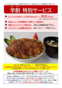 Home › くいしん坊 学割メニュー 2025-07-31 くいしん坊 学割メニュー 関連記事 2025/04/02 修学旅行や遠足で来店を予定している皆様へ 2025/07/31 価格改定のお知らせ くいしん坊 学割メニュー コメントを残す コメントをキャンセルメールアドレスが公開されることはありません。 ※ が付いている欄は必須項目ですコメント ※ 名前 ※ メール ※ サイト 次回のコメントで使用するためブラウザーに自分の名前、メールアドレス、サイトを保存する。 上に表示された文字を入力してください。